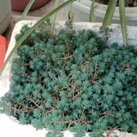 薄雪万年草别名矶小松,景天科景天属多年生草本植物,其细小的蓝绿色棒状叶片环绕生长于茎端,…