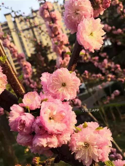 重瓣榆叶梅因花瓣多轮,叶片似榆叶而得名,是我国北方地区普遍栽培的早春观花树种。