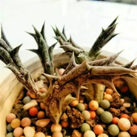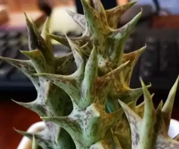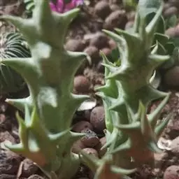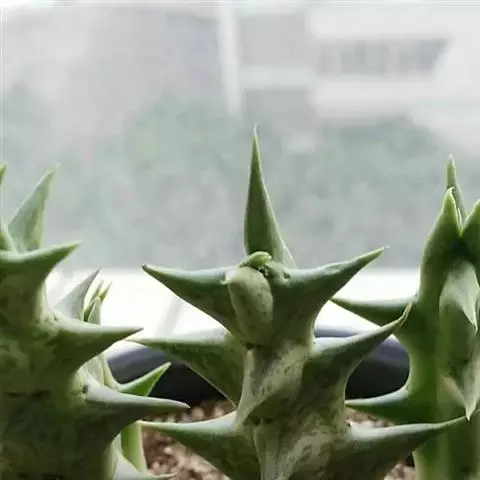 紫龙角植株小巧玲珑,肉质茎长满龙角状突起,开出星状花,非常奇特耐观。盆栽摆放案头、书桌或博古架,显得十分古朴典雅,像是一件有生命的“小摆件”。