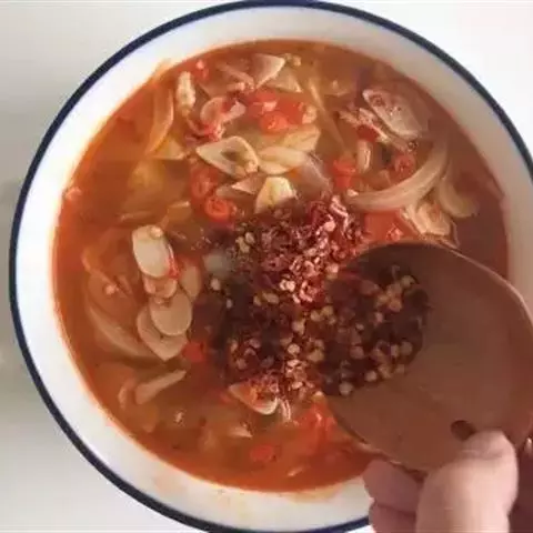 1.先热油,接着炸下花椒捞出,放红辣椒,葱花炸锅。
