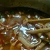 5、下豆瓣酱炒香,加少量水、所有材料一起翻炒。