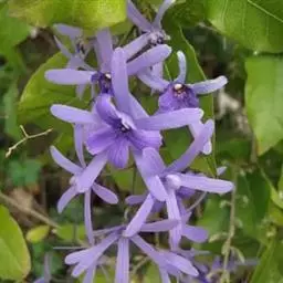 蓝花藤是马鞭草科、蓝花藤属木质藤本,长达5米,叶对生,革质,触之粗糙,椭圆状长圆形或卵状椭圆形,…