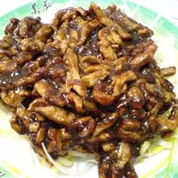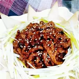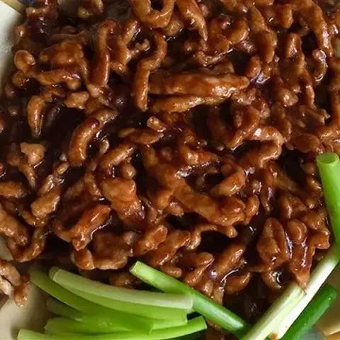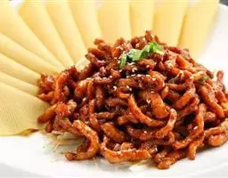 京酱肉丝,是一道知名度很高的菜肴,它是北京菜中的经典代表菜之一。制作时选用猪瘦肉为主料,辅以甜面酱…