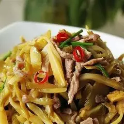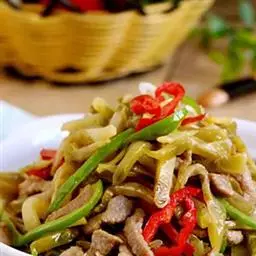 榨菜肉丝是四川省传统的名菜,属于川菜。此菜在四川家庭和中低档饭馆常年制作,原料易得,操作简便,咸淡…