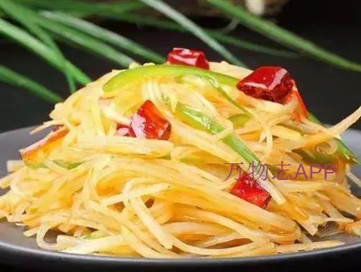 醋熘三丝是以土豆、青椒等为主要食材制作的美食。