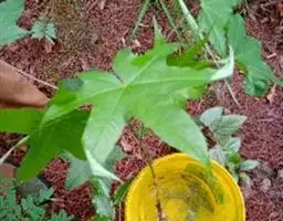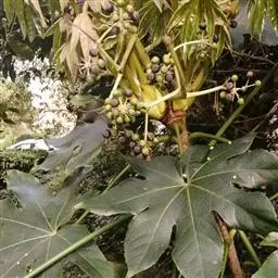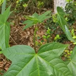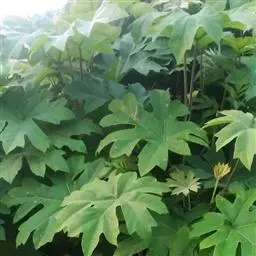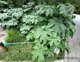 生药材鉴定:性状鉴别完整叶片直径可害90cm,掌状深裂裂片5-9,披针形,先端长国尖,边缘有大锯齿,两面或仅在下面散生黄色星状毛;叶柄长可达90cm,常疏生短刺。叶片革质。