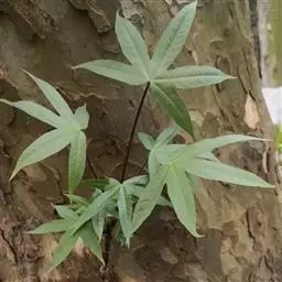 (2)播种育苗:①沙床培苗:用砖头围砌筑床,床高20—30厘米,应阳面低25厘米;床宽1.0-1.2米,长度视具体情况而定。床面铺细沙厚10厘米左右,用1%硫酸铜(波尔多液)进行沙床消毒后平整待用。2-3月间播种,均匀撒播。播后用木板轻压种子,使之与沙密接而平整,并铺一层细沙,以不见种子为度。再加盖拱架塑料薄膜。当种子发芽达30-50%时,可将薄膜掀开。②圃地选择:白花树喜光,幼树耐寒性稍差,宜选排灌良好、避风向阳、疏松深厚肥沃的土壤做圃地。③整地与筑床:三犁三耙整地,每亩用生石灰230公斤或硫酸亚铁粉剂10公斤进行土壤消毒,施腐熟厩肥3000-4000公斤,或施饼肥100-140公斤和钙镁磷肥23-30公斤,耙匀后筑床。床高15-20厘米,床宽1.0-1.2米。床面铺细红心土厚2厘米左右。④芽苗移栽:沙床芽苗发叶2-3片后可起苗移栽,切除芽苗主根,按株行距6-8×25-30厘米进行栽植。栽后及时浇透水,以后须注意保持苗床适宜湿度。