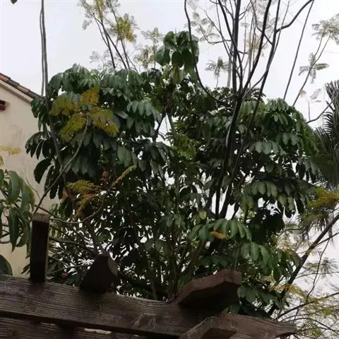 昆士兰伞木,吕松鹅掌柴 ,称昆石兰遮树,澳洲鸭脚木、方式叶鹅掌柴、伞树、大叶伞。叶片阔大,柔软下…