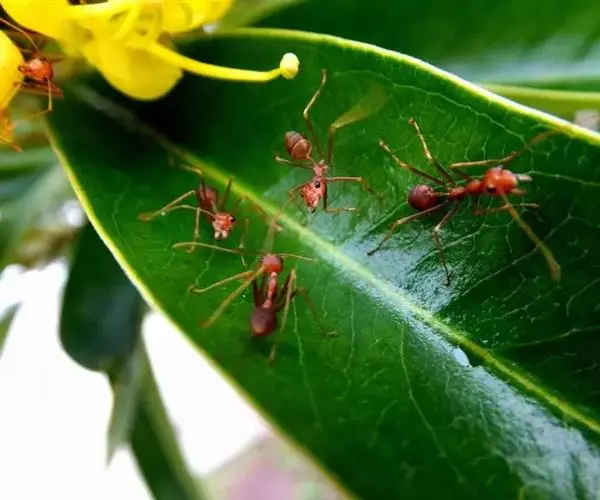 蚂蚁用两个大牙叮咬的方式进行攻击或自卫,咬时会分泌出蚁酸(甲酸),刺激被叮咬的伤口红肿疼痛。