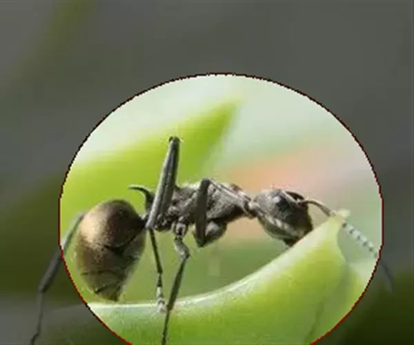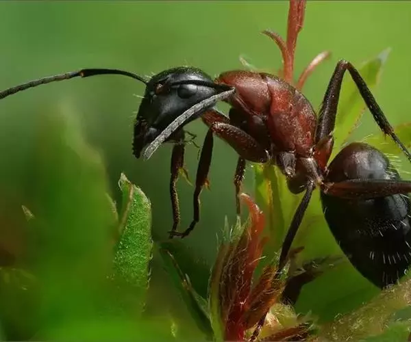 蚂蚁的身体分为头、胸、腹三部分,有六足,体壁薄且有弹性,有膜翅,硬而易碎。