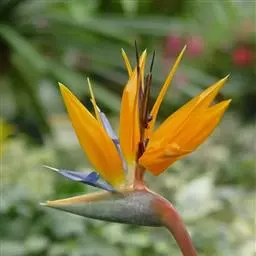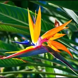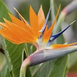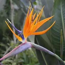 鹤望兰,别名天堂鸟,为鹤望兰科鹤望兰属的一种多年生草本植物;无木质树干;花序生于与叶柄近等长或稍短的花序梗上,佛焰苞1;花较小,萼片橙黄色,长7.5-10厘米,箭头状花瓣基部具耳状裂片,暗蓝色;花期在冬季。该物种原产非洲南部,在中国南方大城市的公园、花圃有栽培,北方则为温室栽培。性喜温暖湿润、阳光充足的气候,适宜生长的温度为25℃左右,耐干旱、较耐寒、不耐水湿,要求疏松肥沃、排水良好,以土层深厚的沙壤土为宜。因花形美丽似鹤,花开时犹如仙鹤翘首远望,花朵寿命亦长,故中文名为鹤望兰。鹤望兰素有“鲜切花之王”的美誉,是一种名贵的观赏花卉,深受广大消费者喜爱。同时,鹤望兰也宜大盆栽植,布置在公园、客厅、会议室、展厅候机室等处。鹤望兰是美国洛杉矶市的官方花卉象征。