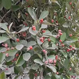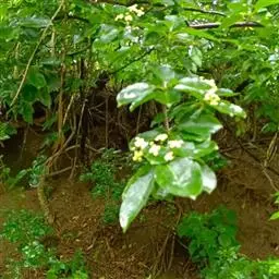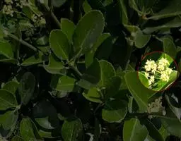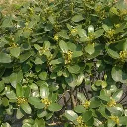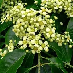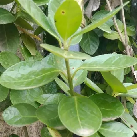 常绿灌木或小乔木,高达8米。 叶光亮革质,倒卵形或窄长椭圆形,长3-6厘米,宽2-3厘米。 聚伞花…