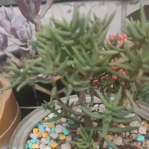 绿玉菊为菊科千里光属多年生肉质植物。植株匍匐或悬垂、向上攀援生长,茎圆柱形,红褐色,叶互生,具叶柄,…