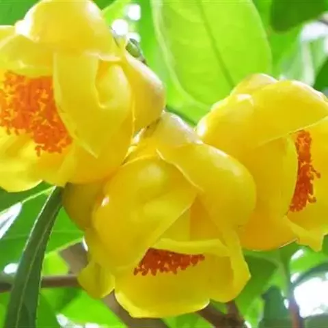 凹脉金花茶,是山茶科山茶属的灌木;嫩枝有短粗毛,老枝变秃;叶革质,椭圆形,先端急尖,…