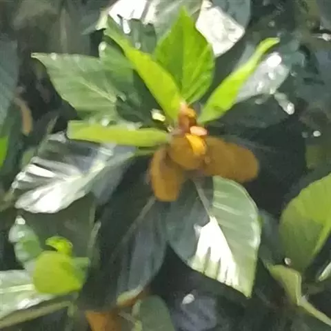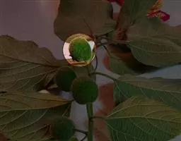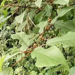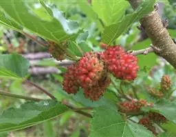花雌雄同株,花序单生叶腋,雄花序椭圆形,长6-12毫米,直径4-7毫米,密被灰白色短柔毛,花序轴长约1.5厘米,被毛,头状腺毛细胞1-(1-6),苞片盾形或圆形;总花梗长6-12毫米,雌花花被片外面被柔毛,先端2-3裂,长圆形,雄蕊1,花丝纤细,花药球形。聚花果球形,直径约4厘米,黄色,干时红褐色,被毛,表面着生很多弯曲、圆柱形长达5毫米的圆形突起;总梗长18-25毫米,被柔毛;核果球形。花期秋初,果期秋末冬初。