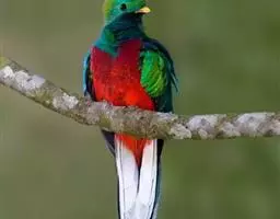 橙胸咬鹃(学名:Harpactes oreskios):全长约28厘米。雄鸟头、颈橄榄绿色,上体及中央尾羽栗色;中央尾羽具黑色端,其外侧的2对尾羽黑色,最外3对尾羽基部黑色具白端;翼覆羽有密的黑、白相间横,飞羽黑褐;颏、喉橄榄色,胸橄榄黄,下体余部橙黄色。嘴铅色,脚黄褐色。雌鸟羽色似雄鸟,但上体羽色较暗,翼覆羽具黑、棕相间横斑。