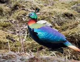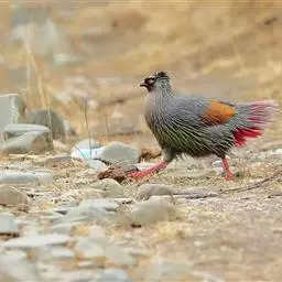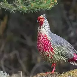 血雉雉科血雉属鸟类,别名血鸡、松花鸡,血雉的雄鸟大覆羽、尾下覆羽、尾上覆羽、脚、头侧、腊膜为红色,…