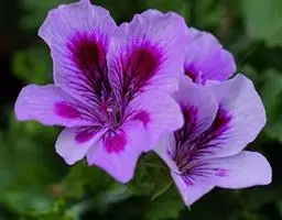 天竺葵为多年生草本,高30-60厘米。茎直立,基部木质化,上部肉质,多分枝或不分枝,具明显的节,密被短柔毛,具浓裂鱼腥味。叶互生;托叶宽三角形或卵形,长7-15毫米,被柔毛和腺毛;叶柄长3-10厘米,被细柔毛和腺毛;叶片圆形或肾形,茎部心形,直径3-7厘米,边缘波状浅裂,具圆形齿,两面被透明短柔毛,表面叶缘以内有暗红色马蹄形环纹。伞形花序腋生,具多花,总花梗长于叶,被短柔毛;总苞片数枚,宽卵形;花梗3-4厘米,被柔毛和腺毛。芽期下垂,花期直立;萼片狭披针形,长8-10毫米,外面密腺毛和长柔毛,花瓣红色、橙红、粉红或白色,宽倒卵形,长12-15毫米,宽6-8毫米,先端圆形,基部具短爪,下面3枚通常较大;子房密被短柔毛。蒴果长约3厘米,被柔毛。花期5-7月,果期6-9月。