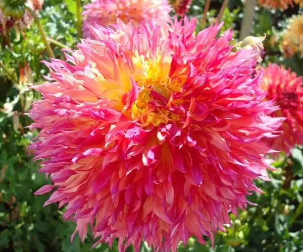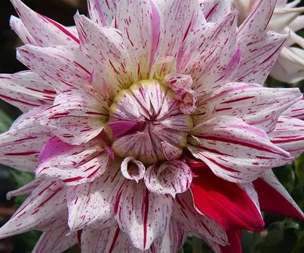大丽花的花朵,花瓣排列得十分整齐,不像牡丹花那样大小错综,自然奔放而富有浪漫色彩。但是,大丽花也有花瓣卷曲多变的,如一种叫“仙人掌”的,就是这样。