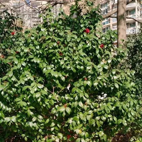 滇山茶:灌木至小乔木,有时高达15米,嫩枝无毛。叶阔椭圆形,上面干后深绿色,发亮,下面深褐色,无毛,…