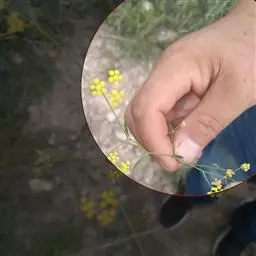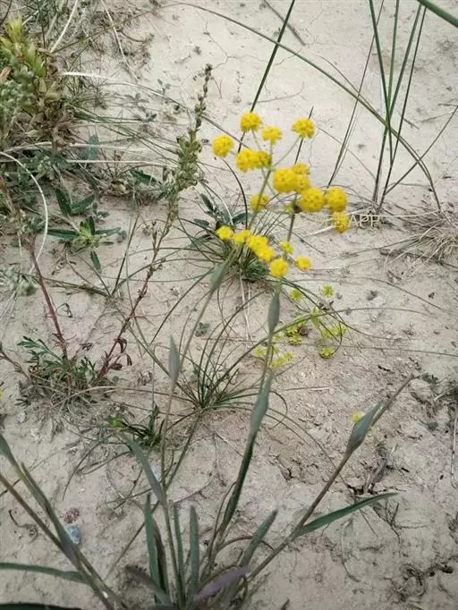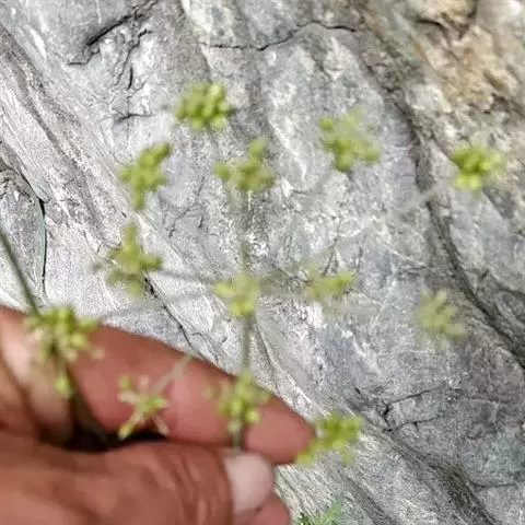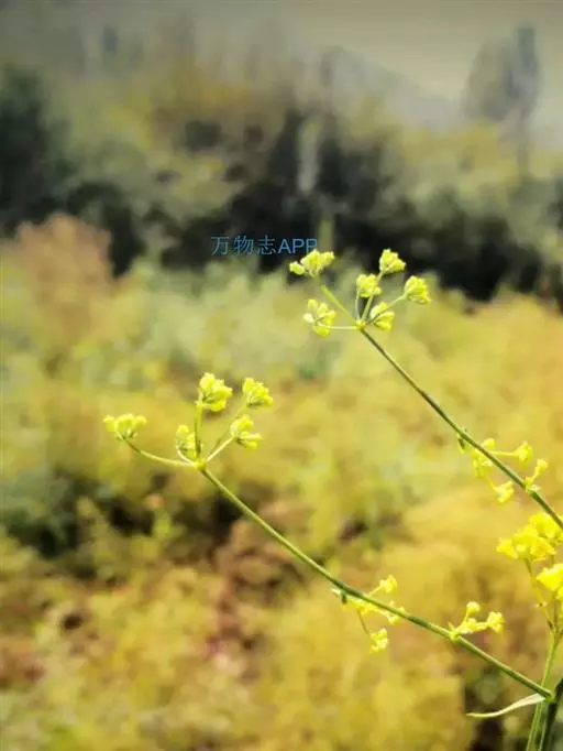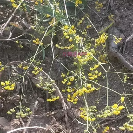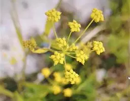 复伞形花序很多,花序梗细,常水平伸出,形成疏松的圆锥状;总苞片2-3,或无,甚小,狭披针形,长1-5毫米,宽0.5-1毫米,3脉,很少1或5脉;伞辐3-8,纤细,不等长,长1-3厘米;小总苞片5,披针形,长3-3.5毫米,宽0.6-1毫米,顶端尖锐,3脉,向叶背凸出;小伞直径4-6毫米,花5-10;花柄长1毫米;花直径1.2-1.8毫米;花瓣鲜黄色,上部向内折,中肋隆起,小舌片矩圆形,顶端2浅裂;花柱基深黄色,宽于子房。