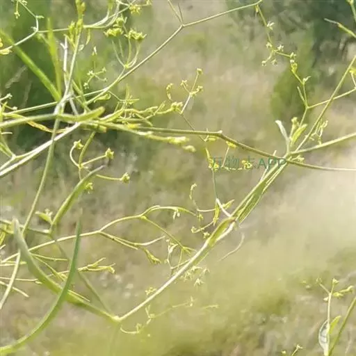果广椭圆形,棕色,两侧略扁,长约3毫米,宽约2毫米,棱狭翼状,淡棕色,每棱槽油管3,很少4,合生面4条。花期9月,果期10月。