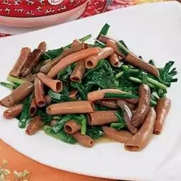 炸灌肠是一种老北京特有的传统风味小吃,属于京菜系。灌肠讲究用猪大肠中炼出的油炸制,因此正宗的炸灌肠…