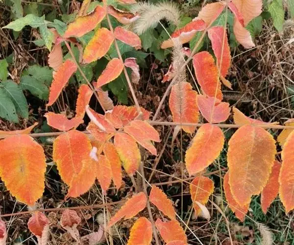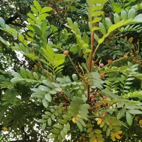 盐肤木 落叶小乔木或灌木,高2-10米;小枝棕褐色,被锈色柔毛,具圆形小皮孔。