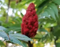 盐肤木3年开始结实,种子量较大,容易采集,10月种子成熟后随采随播,或早春播种。有条件的地方采用人工植苗造林。播种前用40-50℃温水加入草木灰凋成糊状,搓洗盐肤木种子。用清水掺入10%浓度的石灰水搅拌均匀,将种子放入浸泡3-5d后摊放在簸箕上,盖上草帘,每天淋水一次,待种子“露白”后,方可播种。播种时间在春季3月中旬至4月上旬。播种量为每667平方米12千克左右。