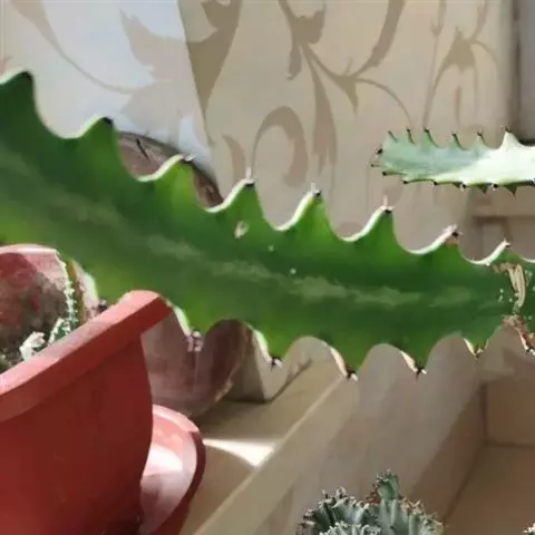 小乔木,高2~6米,直径10~25厘米,老时呈灰色或淡灰色,幼时绿色,上部平展或分枝;小枝肉质光棍…
