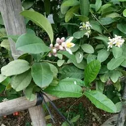 香橼为小乔木或灌木状;株高达5米;幼枝、芽及花蕾均暗紫红色;茎枝多刺,长达4厘米;单叶,…