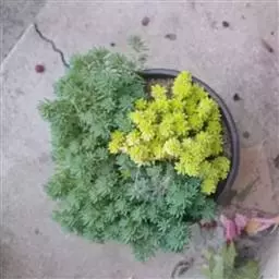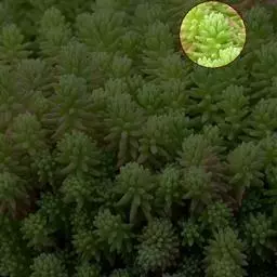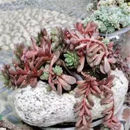 薄雪万年草别名矶小松,景天科景天属多年生草本植物,其细小的蓝绿色棒状叶片环绕生长于茎端,…