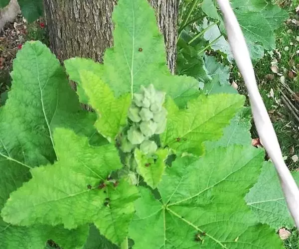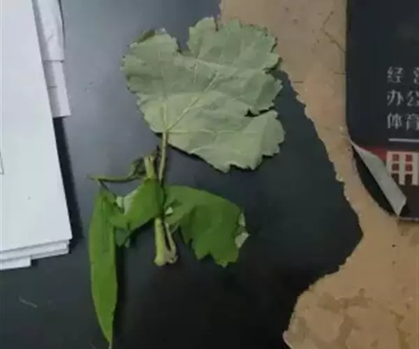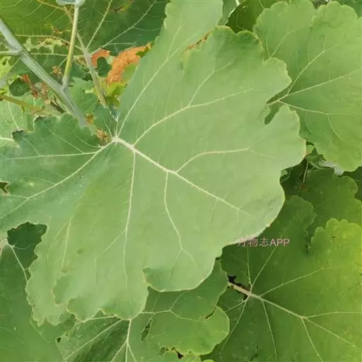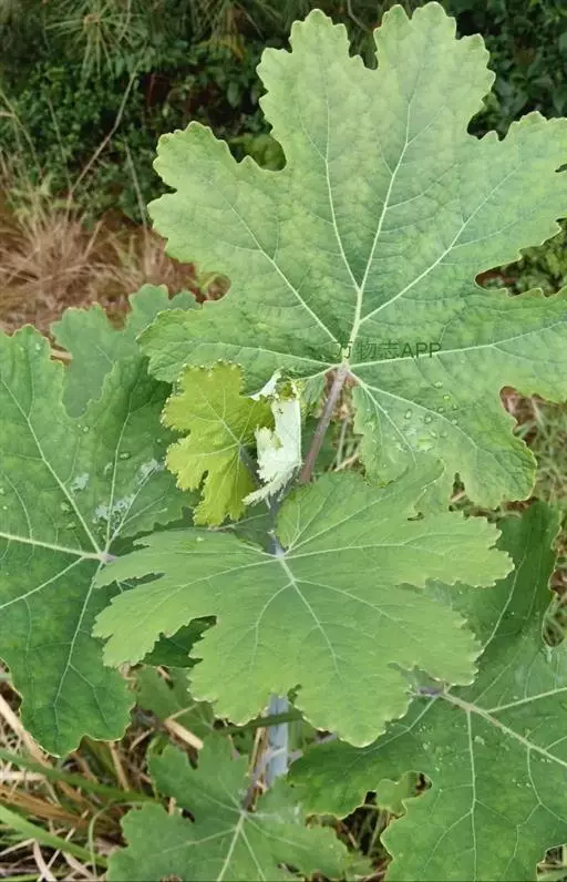 叶片宽卵形或近圆形,长5-27厘米,宽5-25厘米,先端急尖、渐尖、钝或圆形,通常7或9深裂或浅裂,裂片半圆形、方形、兰角形或其他,边缘波状、缺刻状、粗齿或多细齿,表面绿色,无毛,背面多白粉,被易脱落的细绒毛,基出脉通常5,侧脉2对,稀3对,细脉网状,常呈淡红色;叶柄长1-12厘米,上面具浅沟槽。
