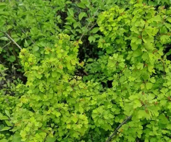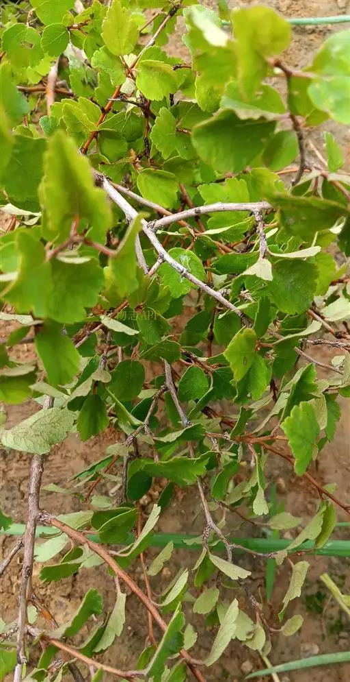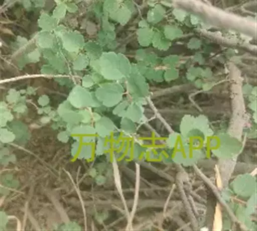 灌木,高1-2米;小枝细瘦,开展,稍呈之字形弯曲,嫩时褐黄色,无毛,老时暗灰褐色;冬芽小,宽卵形,先端钝,无毛,外被数个鳞片。叶片近圆形,长1.7-3厘米,宽1.5-3厘米,先端钝,常3裂,基部圆形、楔形或亚心形,边缘自中部以上有少数圆钝锯齿,两面无毛,下面色较浅,基部具显著3-5脉。