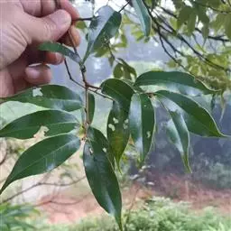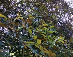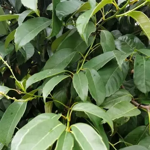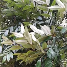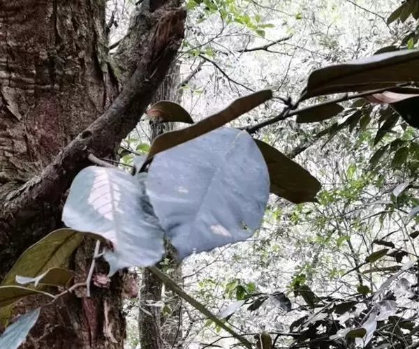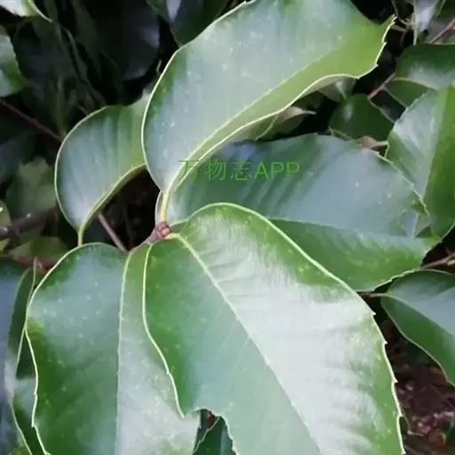 新生嫩叶暗紫褐色,成长叶革质,卵状椭圆形,卵形,长椭圆形或倒卵状椭圆形,长15-30厘米,宽5-10厘米,顶部渐尖,短突尖或尾状,基部近于圆或短楔尖,对称或有时一侧略短且偏斜,叶缘至少在近顶部有锯齿状锐齿,侧脉直达齿端,中脉在叶面凹陷,侧脉每边15-18条,网状脉明显,叶背红褐色(新生叶)、淡棕灰或银灰色(老叶);叶柄长1.5-3厘米。