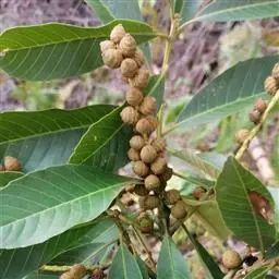 坚果扁圆锥形,高1.5-1.8厘米,横径2-2.8厘米,被毛,果脐占坚果面积约1/4。