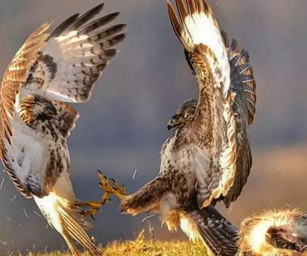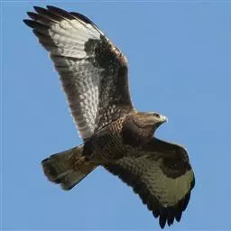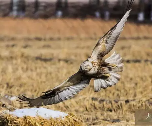 大鵟(学名:Buteo hemilasius)为鹰科鵟属的鸟类,是一种大型猛禽,体长 570-760毫米。头顶和后颈白色,各羽贯以褐色纵纹。头侧白色;有褐色髭纹,上体淡褐色,有3-9条暗色横斑,羽干白色;下体大都棕白色;跗蹠前面通常被羽,飞翔进翼下有白斑。虹膜黄褐色,嘴黑色,蜡膜黄绿色,跗蹠和趾黄色,爪黑色。