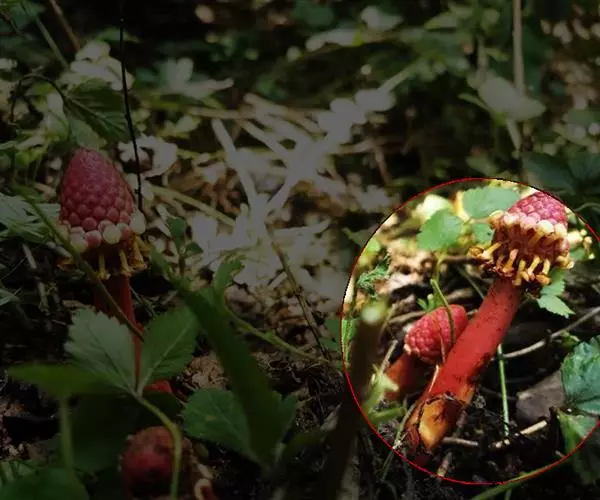 东方草莓(学名:Fragaria orientalis Losinsk),又称泡泡莓。多年生草本,高5-30厘米。随着生态环境变化,形态特征上相应也有一定的变异,从我国东部向西随着海拔高度上升,植株一般变矮小,花朵减少至1-2朵,茎、叶柄上毛也变稀疏至脱落。与野草莓F. vesca L.极为相似。果实鲜红色,质软而多汁,香味浓厚,略酸微甜,可生食或供制果酒、果酱。 可用于血热性化脓症,肺胃瘀血,止渴生津,祛痰。