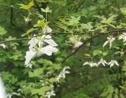 花序聚伞状,有花(1)2-5(6)朵,基部苞片淡绿色或具一有柄之小叶,花梗长0.5-1.5厘米,被开展柔毛。花两性,稀单性,直径1-1.5厘米;萼片卵圆披针形,顶端尾尖,副萼片线状披针形,偶有2裂;花瓣白色,几圆形,基部具短爪;雄蕊18-22,近等长;雌蕊多数。