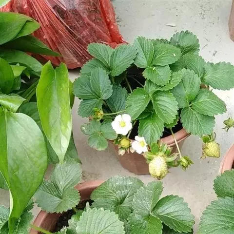 采收 草莓苗开花、坐果到浆果着色,软化,释放特有香味,时间约 30天。草莓浆果成熟后,应分批采收上市。一般亩产草莓1500千克。