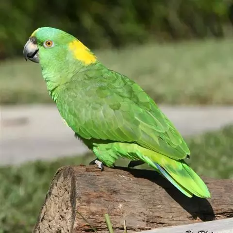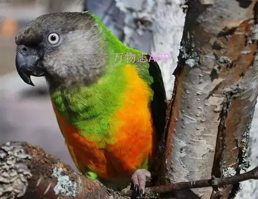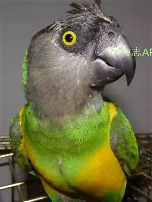 塞内加尔鹦鹉身体主要呈绿色,头部为灰色,腹部为黄色 。