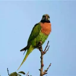 塞内加尔鹦鹉(学名:Poicephalus senegalus)是典型的攀禽,鸟喙强劲有力,喙钩曲,上颌具有可活动关节,喙基部具有腊膜。肌肉质舌厚。脚短,强大,对趾型,两趾向前两趾向后,适合抓握和攀援生活。体羽主要是绿色,头部为暗灰色,胸部下方和腹部有V字型的橙黄色羽毛。主要栖息在各种开阔的林地,有林地的开阔草原,其活动范围地势多低于海拔1000米,群居性,食物包括各类水果、种子、嫩芽等,对许多当地农民而言, 塞内加尔鹦鹉是农业害鸟,因为它们常至农田吃玉米、小栗米、花生等农作物。分布于西非各国。