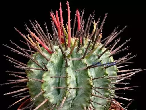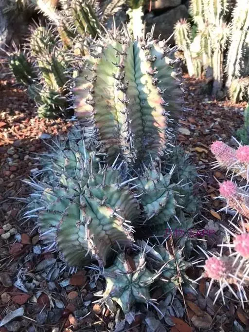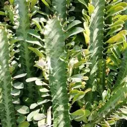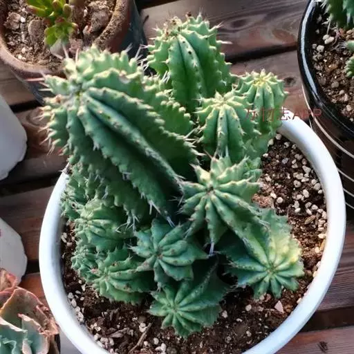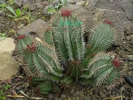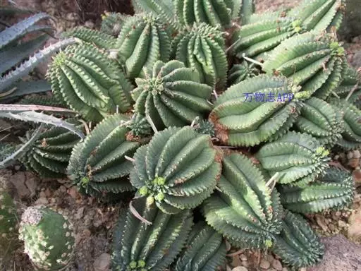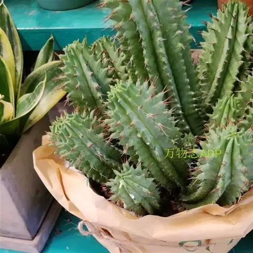 魁伟玉原产南非,是一种大戟科的多年生肉质植物,植株具粗圆筒形肉质茎,有10条以上的突出棱,…