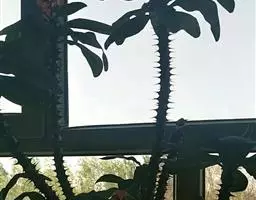 魁伟玉原产南非,是一种大戟科的多年生肉质植物,植株具粗圆筒形肉质茎,有10条以上的突出棱,表皮绿色至灰绿色,披有白粉,有较为明显、平行排列的深色横肋,刺生于棱缘上,红褐至深褐色,易脱落。小叶早脱落,因此给人的印象是植株始终无叶。聚伞花序,小花紫红色,但盆栽条件下不易开花。魁伟玉形态奇特,酷似某些品种的仙人掌类植物,用工艺盆栽种点缀几案、书架和窗台等处,古朴自然,如同有生命的工艺品。