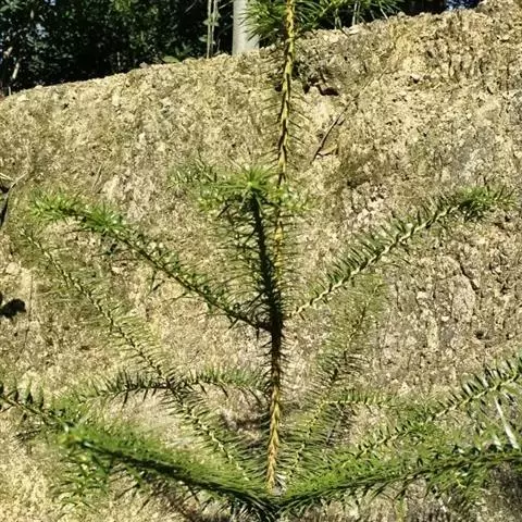 定植后每年可生长30厘米,但移植后的几年生长会慢一些。新发的小叶柔软簇生,之后变成或尖或钝的硬针。叶片不足5厘米长,蓝色或蓝绿色。花绿色、橘黄色或紫色,春季开花。当年生小枝为棕褐色。