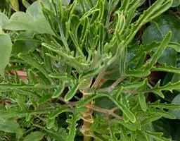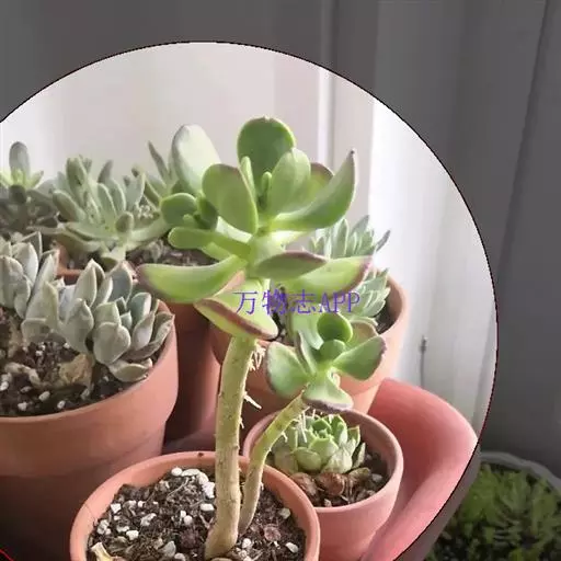 株高25厘米,分枝较少,茎被棕褐色硬表皮,易剥落。叶长圆形或倒披针形,略扁平至几乎圆柱状,长5- 8厘米,宽1.5-2.5厘米,叶全缘,先端较尖锐。