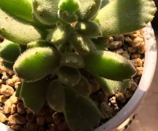 将熊童子移入新盆后,应随时注意保持其生长环境的干燥,保证有充足的阳光照射。但需要注意熊童子的生长温度不能超过35℃,否则植物会进入休眠期,生长停滞。