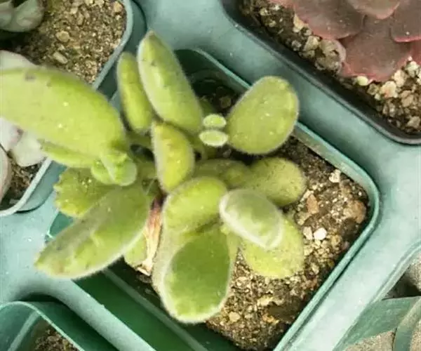 多年生肉质草本植物,植株多分枝,呈矮小灌木状, 熊童子 植株高30厘米,株幅11-12厘米。茎圆柱形,密被短绒毛,绿色。