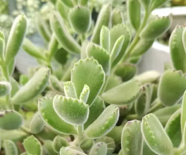 熊童子(学名:Cotyledon tomentosa Harv.)是景天科,银波锦属的多年生肉质草本植物,植株多分枝,茎绿色,肉质叶肥厚,交互对生,卵圆形,绿色,密生白色短毛。叶端具红色爪样齿,二歧聚伞花序,小花黄色,花期7-9月。