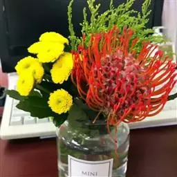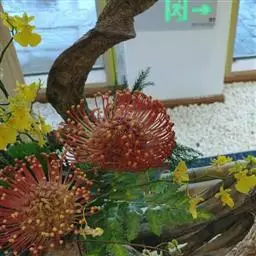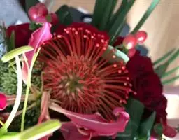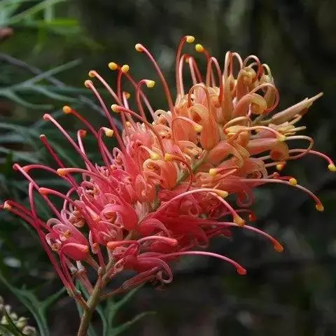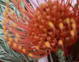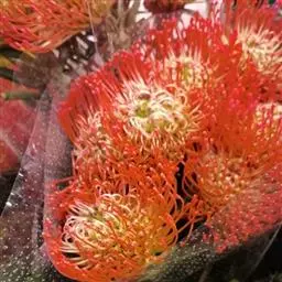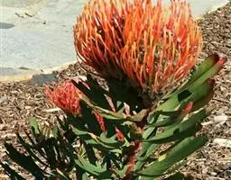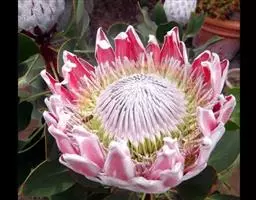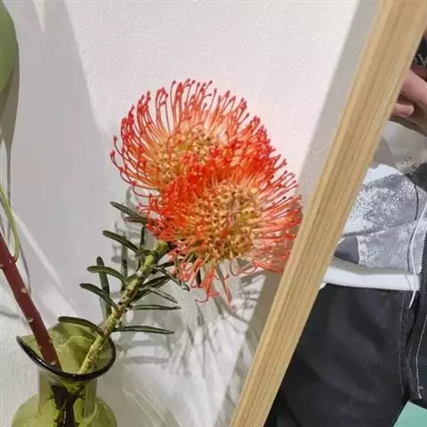 帝王花,山龙眼科帝王花属多年生常绿灌木植;茎干粗壮,叶色翠绿光亮;花朵呈圆球状;其苞片有的完全打开,…